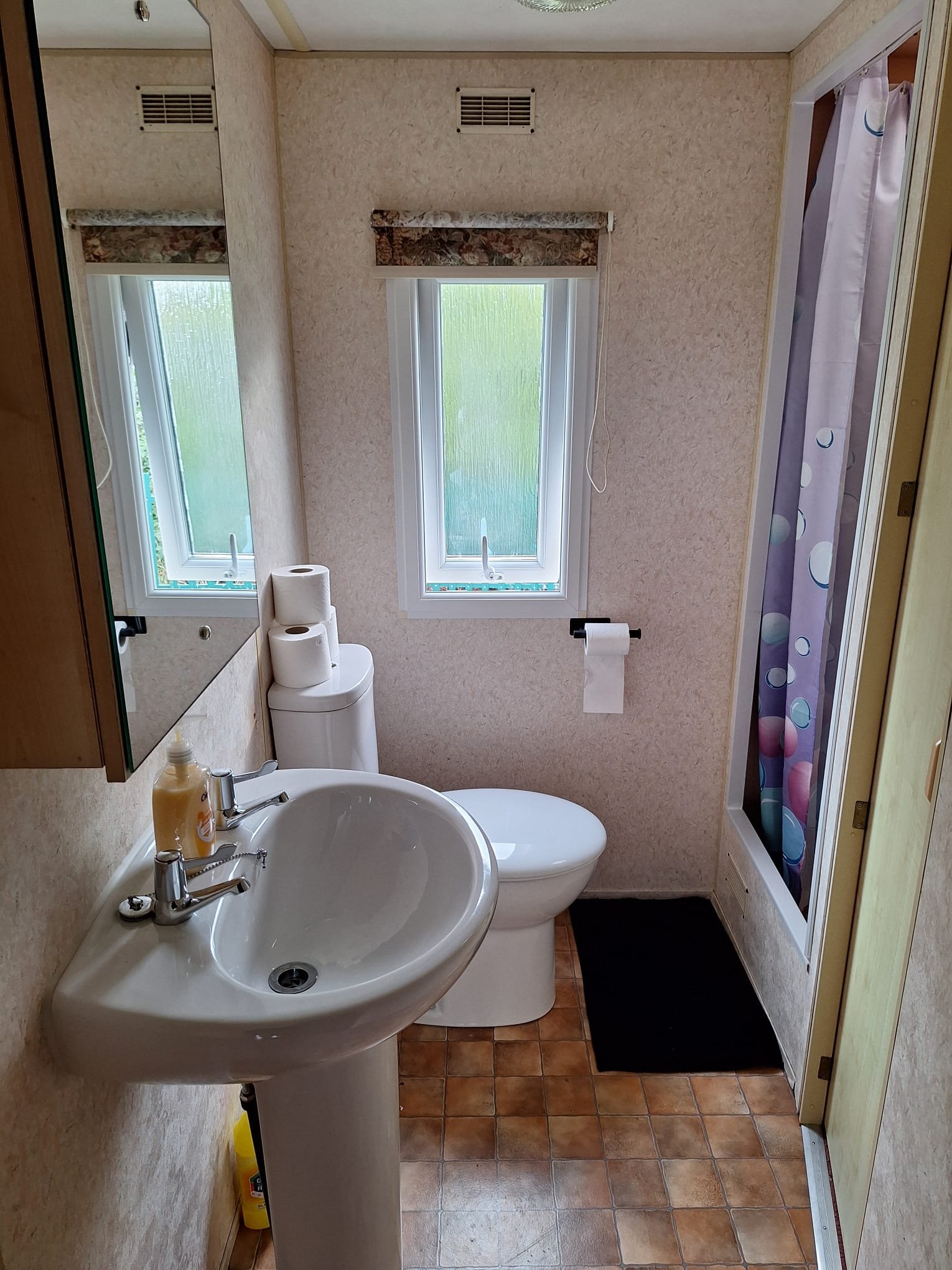 Toilet with shower. Enclosed verandas with recliner chairs, pet friendly and private access to the beach.